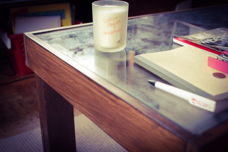 昨年の改装前の片づけのとき、父親が思いつきでベッドをばらし、いい感じのテーブルを制作しました。