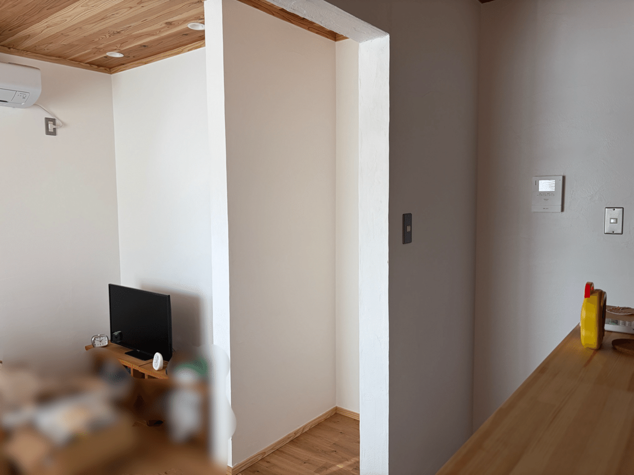 在来工法の木造住宅で各々独立した部屋であったため、柱の都合上、ドアや通路の空間がリノベ後もややネックになっていました。